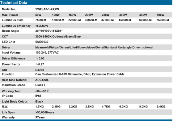 | گزینه های راننده | Meanwell/Philips/Osram/Lifud/Sosen/Moso/Done/برنده مستطیل استاندارد |
